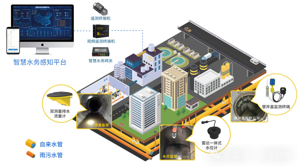预防内涝:通过对排水管网流量和水位的监测,能够提前预测排水系统的承载能力。在暴雨等极端天气情况下,及时掌握管道内水位上升情况,判断是否会发生内涝。